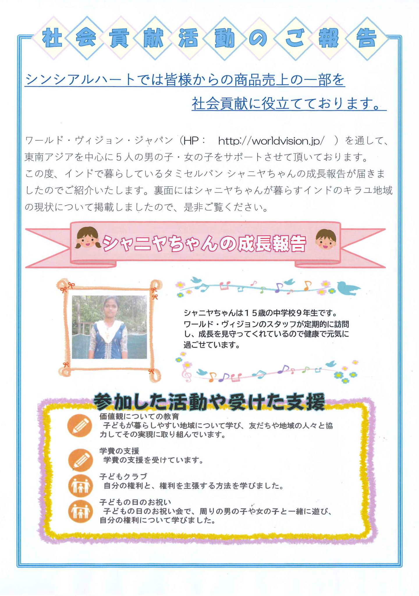 この度、弊社がサポートしているタミルセルバン・シャニヤちゃん(9歳)に