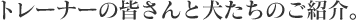 中央は、アシスタントトレーナーの鯨井さんと4歳になるカノンのコンビ。「訓練はなかなか難しいです」と漏らす鯨井さんはトレーナー歴3年。やんちゃ盛りのカノンに手を焼いています(笑)。